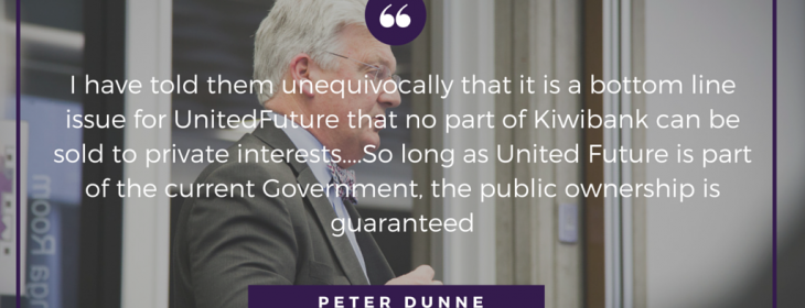 UnitedFuture leader Peter Dunne said today the ‘Keep Kiwibank Bill’, a private Members’ Bill sponsored by Labour’s David Parker, is unnecessary and consequently, UnitedFuture has voted against it at its Second Reading. “As part of the 2011 Confidence and Supply Agreement between UnitedFuture and National it was agreed there would be no sale of Kiwibank … Continue reading DUNNE – KEEP KIWIBANK BILL UNNECESSARY